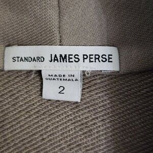Standard James Perse Open Front 100% Cotton Puddy Color Cardigan Sweater Size M. Pit to pit 20", shoulder to hem 27", Shawl Collar, Heavy Cotton, Rounded Open Front, Retail $195. Good Pre-Owned Condition