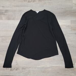 Standard James Perse Size 3 Large Black Long Sleeve Scoop Neck Slub Cotton