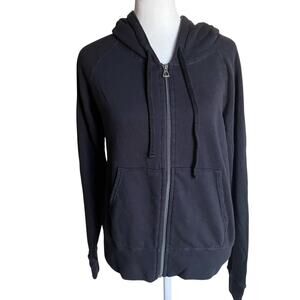 Standard James Perse Sz 2 French Terry Hawaii Zip Hoodie Black Supima Cotton