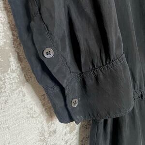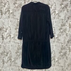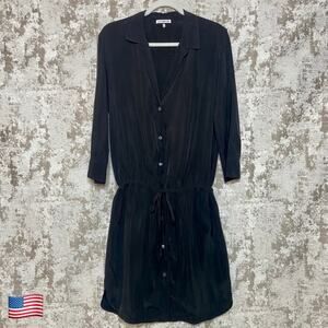 Gorgeous shirt dress from James Perse! Features half length sleeves, mini length skirt, shirt dress style, adjustable tie waist, v neckline, full button front, open collar, slant pockets, and all black color.