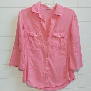 Standard James Perse Women's 3 (Large) Sheer Slub Side Panel Shirt Pink Supima