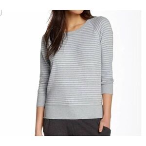 Standard James Perse Women's Gray and White Striped 3/4 Sleeve Pullover Sweatshirt sz 3 (L)