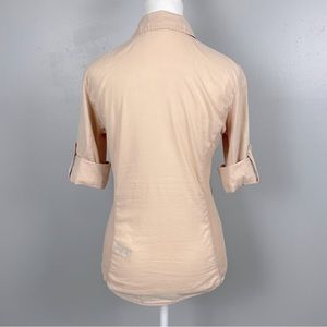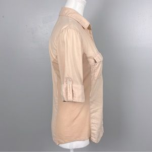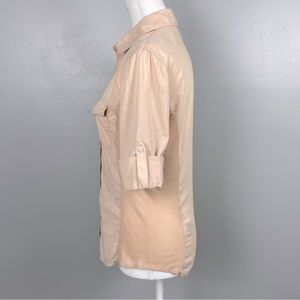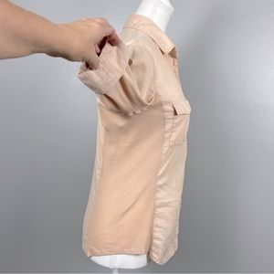 Standard James Perse peach ribbed detail roll sleeve button front shirt, size 2.