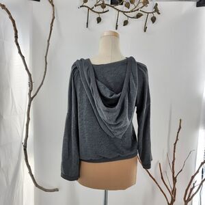 Gray hoodie size 2 no pocket. Lightly pulled texture which is normal for this style. Size 2 is the equivalent of a medium in this brand