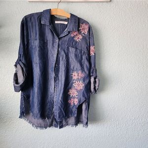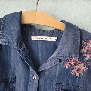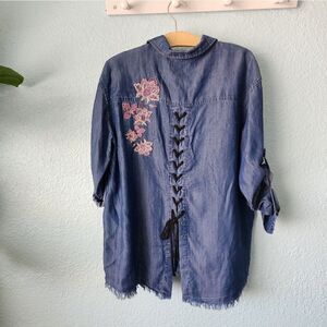 Standard grace 100% lyocell embroidery tie back boho chambray style shirt