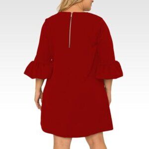 Standards Practice Stella Brick Red Crepe Knit 3/4 Balloon Sleeve Midi Dress- 1X