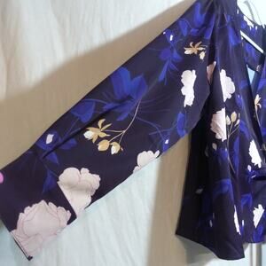 Standards & Practices Elise Floral-Print Tie Long Sleeve Mid Bloom Blouse Sz 2X
