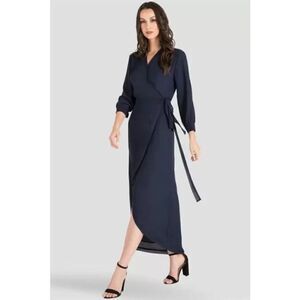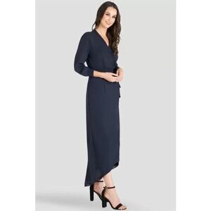 Standards & Practices - Elle Midnight Blue Tulip High Low Chiffon Wrap Dress siz