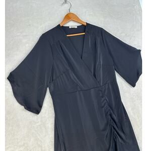 Standards & Practices Faux Wrap Dress Womens 1X Plus Black Flowy with Flutter at Bottom - No-Iron - Versatile - Funeral / Date / Office