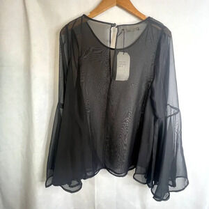 Standards & Practices Sheer Butterfly Bell Sleeve Overlay Blouse Size Medium