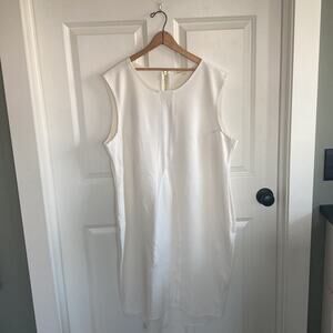 This Womens Standards & Practices sleeveless midi dress is elegant yet playful for off hours. Features a back zip and scoop neckline. It also features a slightly longer back for an asymmetrical hemline that's feminine and current. This dress is sophisticated enough for the workwear