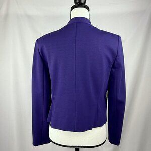 Eye catching Premise crop Blazer in a beautiful purple. Long sleeves, angled cut in front. 3 faux pockets. Size 6.