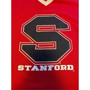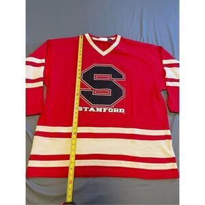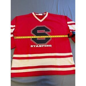 Stanford University Size Large Cardinal Crable Sportswear Crewneck Sweater. In overall great condition for the age and was never washed so there is a small mark/stain near the left armpit. The screen print has not cracked. Item was purchased from a collector and was stored away. This is more of a thick cotton material t shirt and the sleeves are about 3/4 length. Item does have that vintage smell (if you buy vintage items you know what I’m talking about). Due to lighting color may vary. Smoke and pet free home. Please look at measurements on pictures before purchasing. I tried to get the best pictures to show the condition of the item. There may be flaws that I did not capture in picture or am unaware of. Once you have purchased NO RETURNS OR NO EXCHANGES. Any further questions or offers contact me. Thank you and God Bless.