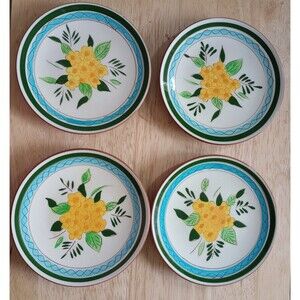 These vintage Stangl Pottery Country Garden Bread & Butter Plates are a set of 4 vintage ceramic dishes made in the USA. These round plates, measuring 6.25" in width, feature a floral pattern in multi-color, perfect for adding a touch of mid-century charm to any table setting. With the Stangl brand known for its quality pottery products, these bread plates are both functional and decorative, making them a unique addition to any collection of dinnerware.