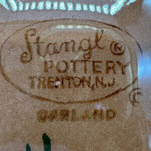 This decorative plate from Stangl Pottery showcases the Garland floral pattern, reflecting the craftsmanship of Trenton, NJ. Its intricate design and muted hues make it a distinguished piece for display or collection.