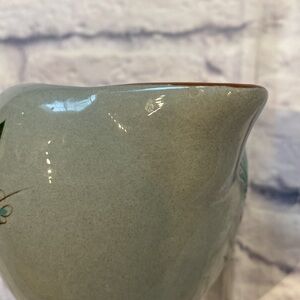 This is a vintage Stangl Pottery creamer in the "Golden Harvest" pattern. Vintage condition with signs of normal wear. Slight chip of paint near the spout and may have hairline crack through flower.