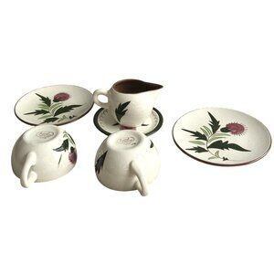 This Stangl Pottery set tells a tale of charm and artistry, showcasing the Thistle pattern's delicate design. A timeless collection for tea moments.