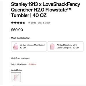 Our love for pink florals goes global with the latest Stanley 1913 x LoveShackFancy collab. The Ibiza Sunset Collection introduces soft coolers in an Ikat rose print that features an exclusive charm set. And each water bottle shines with a subtle and shimmery finish. For a splash of romance wherever you go.