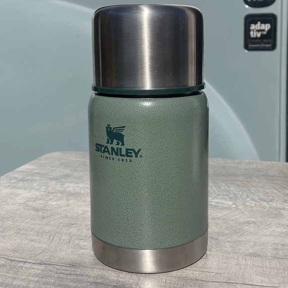 The Stanley 24 oz Vacuum Insulated Food Jar is a high-quality insulated bottle designed by the reputable brand Stanley. It features a sleek green color and is equipped with insulation capabilities to keep food at the desired temperature for extended periods of time. Perfect for storing and transporting meals, this food jar is a practical and durable option for those looking to keep their food fresh and organized.