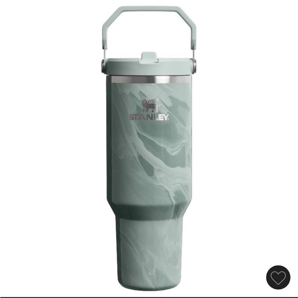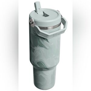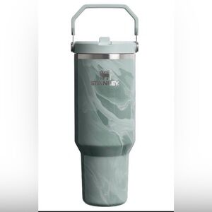 Elegant Stanley tumbler with a mint swirl pattern. Ideal for beverages on the move.