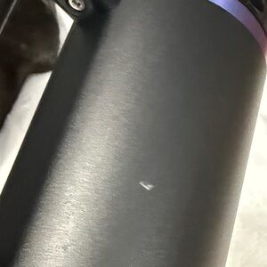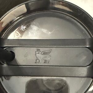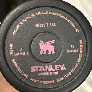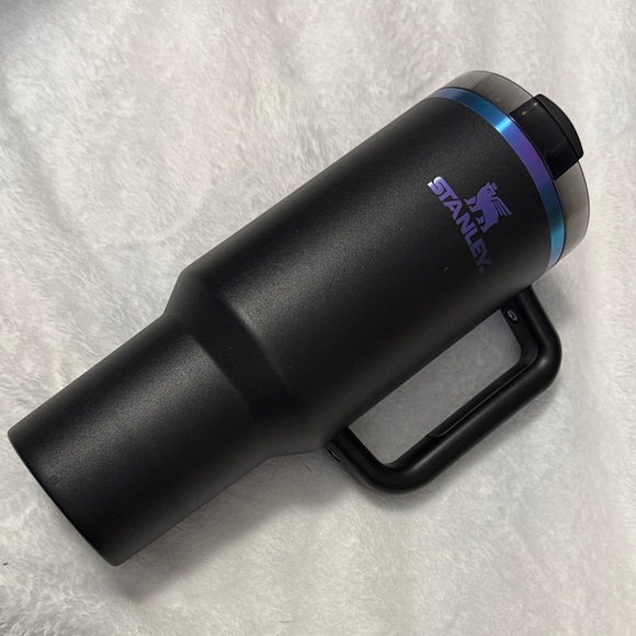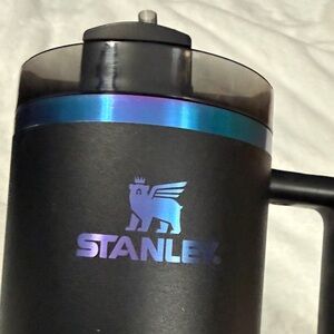 Durable Stanley mug with a black finish. Features an iradecent accent and ergonomic handle.
