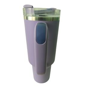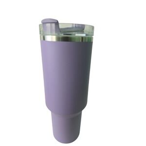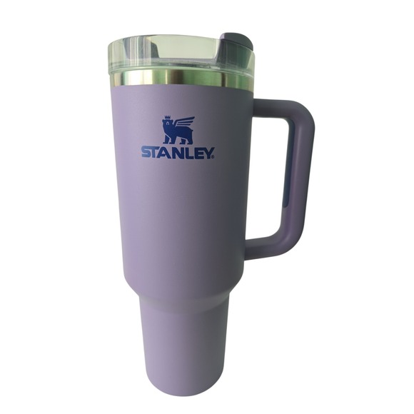 A large capacity 40oz Stanley Quencher H2.0 FlowState Tumbler in a beautiful lavender ice purple color. This versatile travel cup features a comfortable ergonomic handle and a secure straw lid for easy sipping on the go. Perfect for staying hydrated during long commutes, outdoor adventures, or busy days at home.