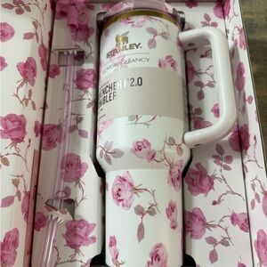 Stanley tumbler with sturdy handle. Ideal for beverages on the go. Any imperfections are pictured.