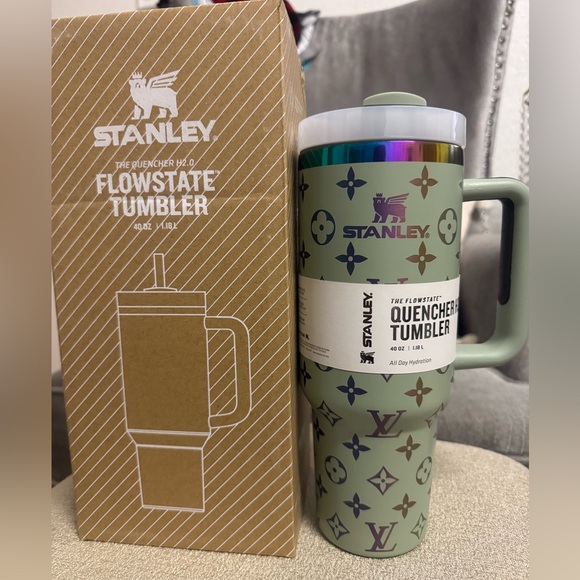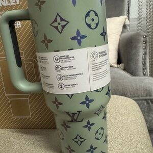 Stanley 40oz Tumbler in Olive green with Lv designs. New.