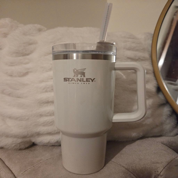 Stanley 40oz White Stainless Steel Insulated Thermos with Brand New Straw/Brush