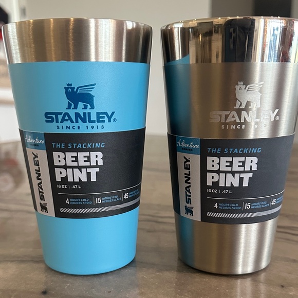 Savor drinks with the Stanley Adventure Beer Pint Set. Stylish blue and silver finish. Keeps beverages cold for hours.