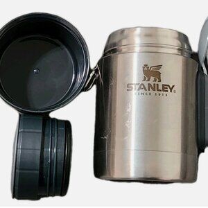 he Stanley All-In-One Food Jar is a versatile and durable insulated container that keeps both hot and cold beverages at the desired temperature for up to 12 hours. Made of high-quality 18/8 stainless steel, this 18oz jar features a leakproof lid that doubles as a cup or bowl. With a solid brushed stainless steel color and a compact design, this food jar is perfect for outdoor activities, camping trips, and on-the-go meals. Hand wash only to maintain its quality, this jar from Stanley is backed by a lifetime manufacturer warranty for added peace of mind.