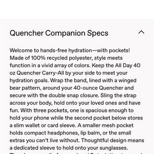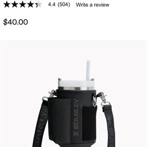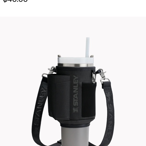 Durable black drink carrier by Stanley. Includes adjustable strap for easy transport. Keeps beverages secure and insulated. New without tags. I decided to use the smaller Stanley. This holds a 40oz. Happy shopping! 🙂