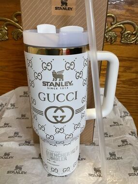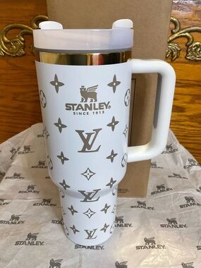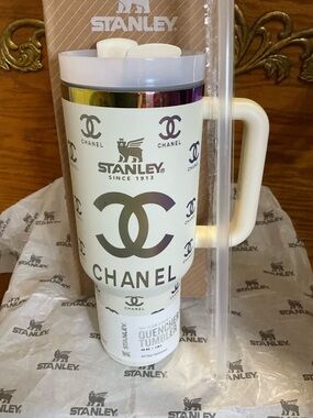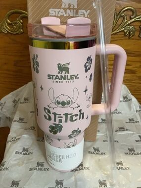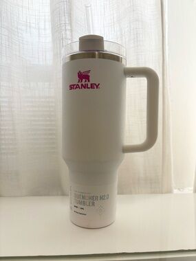 Stylish Stanley tumbler with a comfortable handle. Perfect for drinks on the move.