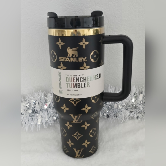 Stanley Black and Gold LV Quencher H2.0 Tumbler 40 oz
