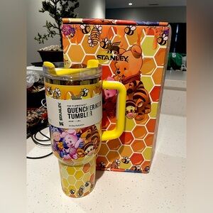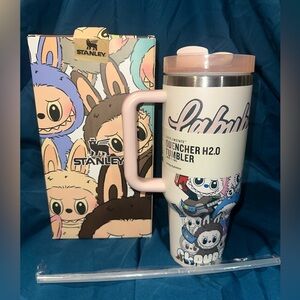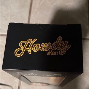 Stanley tumbler set with cowboy design. Features black and white pattern. Includes Barbie and Ken branding.