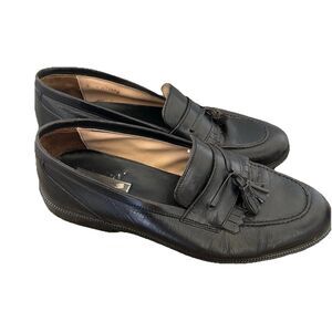 Stanley Blacker Men Loafer 9 Black Leather Tassel Slip On Dress Shoes