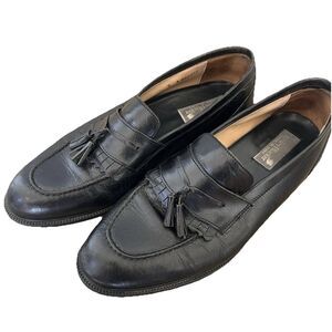 Stanley Blacker Men Loafer 9 Black Leather Tassel Slip On Dress Shoes Made Italy