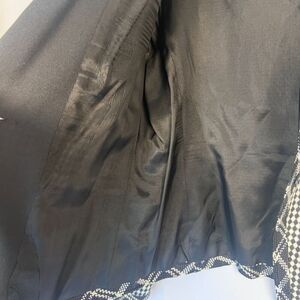 Single breasted, long sleeve, button cuffs, front pockets, lined, neckline button and one waist button, shoulder pads