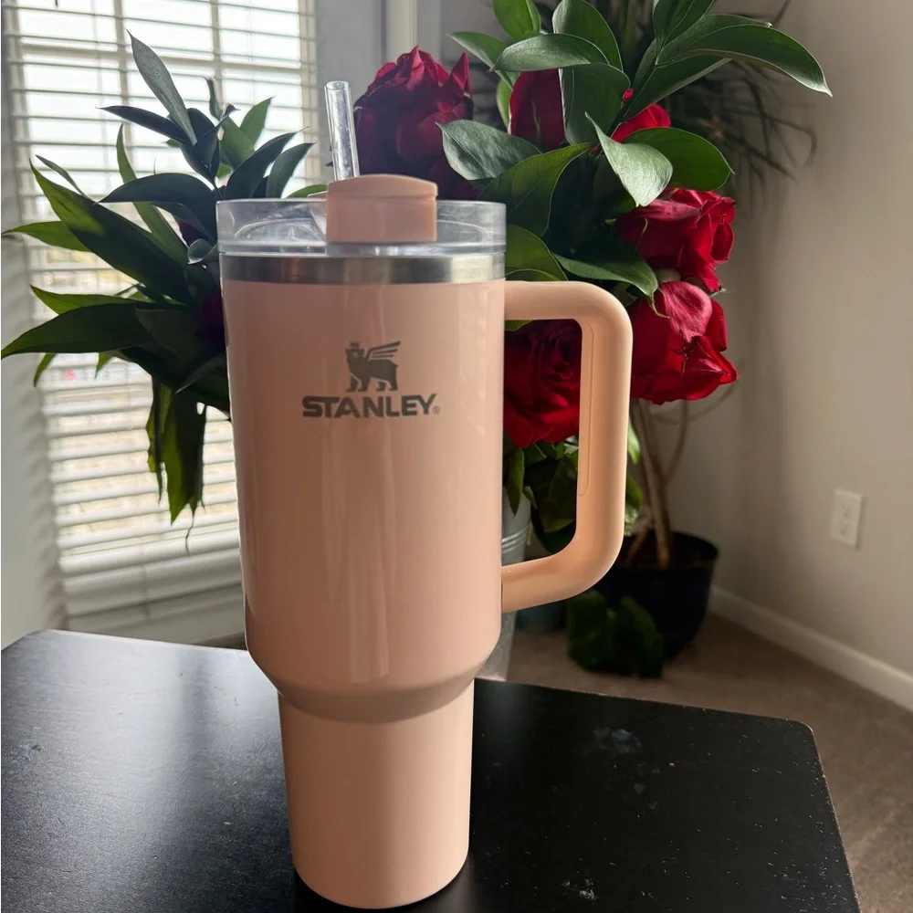 Stanley Blush Pink Insulated Travel Cup with Handle and Straw