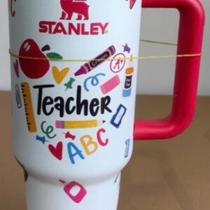 Elegant Stanley tumbler in blush. Comes with a durable handle and clear lid. 40oz.