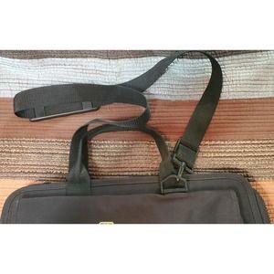 Black Stanley Bostitch Contractor Briefcase. Designed to hold a laptop, pens and pencils, Cell phone, business cards and pouches for paperwork and notebooks. I no long have use for it. Very good condition, no rips or tears, zipper closures work as they should. I cleaned it as best as I could, may be a small amount of dust from storage. 17 inches long 13 inches tall and 5 inches thick. Comes with a shoulder strap also. Very heavily constructed.