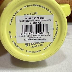 Vibrant yellow Stanley tumbler with handle. Ideal for on-the-go hydration.