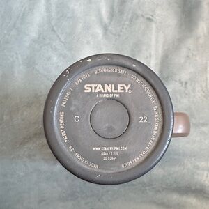 Durable Stanley travel mug in charcoal. Features a robust handle and secure lid.