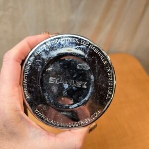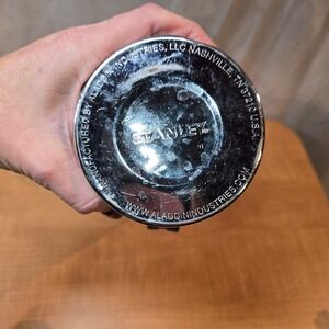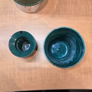 I'm guessing this was used once during hunting season and then put away never to be used again. It might be vintage but there is a website on the bottom of the thermos so it can't be that old, can it? There is a dent where it probably was dropped but it was tested and holds liquid (hot or cold) for hours with no leaks.