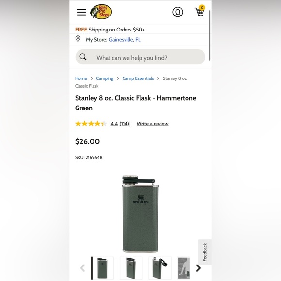 Durable Stanley flask. Hammertone green finish. Ideal for outdoor use.
