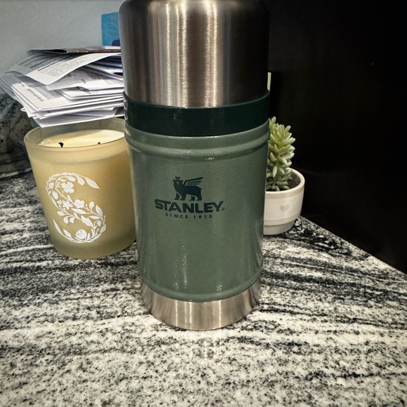 Reliable Stanley thermos in classic green. Keeps drinks hot or cold. Ideal for any occasion.
