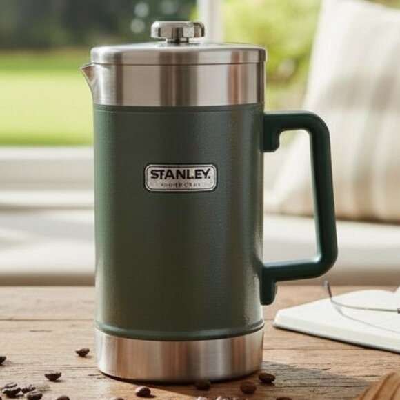 Take the fuss out of fancy French coffee and add in rugged durability with the Stanley® Classic Vacuum French Press. This ultra-tough Stanley coffeemaker features legendary Stanley build quality and insulation. Unlike ordinary insulated coffee makers, the Stanley Classic Vacuum French Press delivers the perfect brew and keeps it hot for up to 4+ hours. 18/8 stainless steel construction and the double-wall steel lid retain the heat, and the ergonomic handle offers easy pouring.