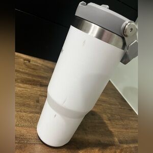 Elegant Stanley tumbler in white. Durable and stylish for everyday use. Some dents and scratches as pictured. Straw not included. Cleaned and sanitized
