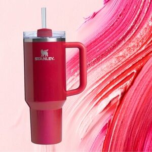 Large insulated Stanley tumbler in a soft lavender hue. Includes a comfortable handle and a clear straw lid. Keeps drinks insulated for hours. Easy to carry for daily use.