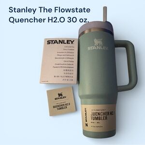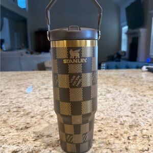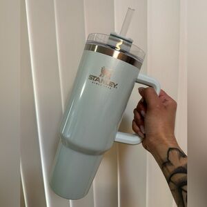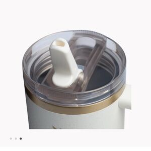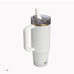 Elegant Stanley tumbler in Cream Moon. Features a durable handle and clear lid that is leak proof!